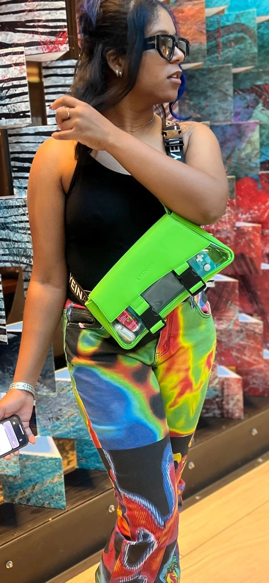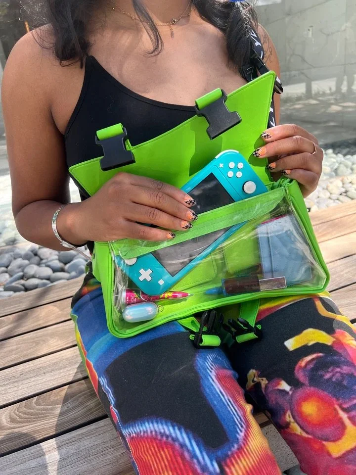 The prompt of this project went as follows: “A functional hands-free bag for the 2024 Afronation Festival that uses LYEINANI design language.” The brand planned to send their influencer base to the 2025 Afronation festival in Portugal to represent the brand in an unapologetic way. The annual 3-day festival celebrates Afro-beats, dancehall, Hip Hop, and RnB. Every year, attendees are notably concerned about bag theft, so the bag design had to ensure security of the users’ items. The festival has strict rules about bag size, and all bags needed to be transparent.